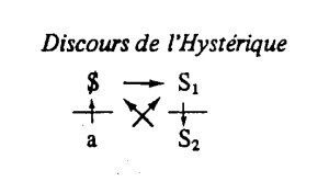 Première leçon de la belle bouchère, qui nous dévoile la structure hystérique, que Lacan écrira plus tard sous la forme du discours hystérique : l’objet (a) du désir est la vérité du sujet hystérique qui interpelle sans cesse l’autre aux fins de produire un savoir qui, bien sûr, ne peut la satisfaire, puisque aucun retour ne s’effectue sur la source désirante :